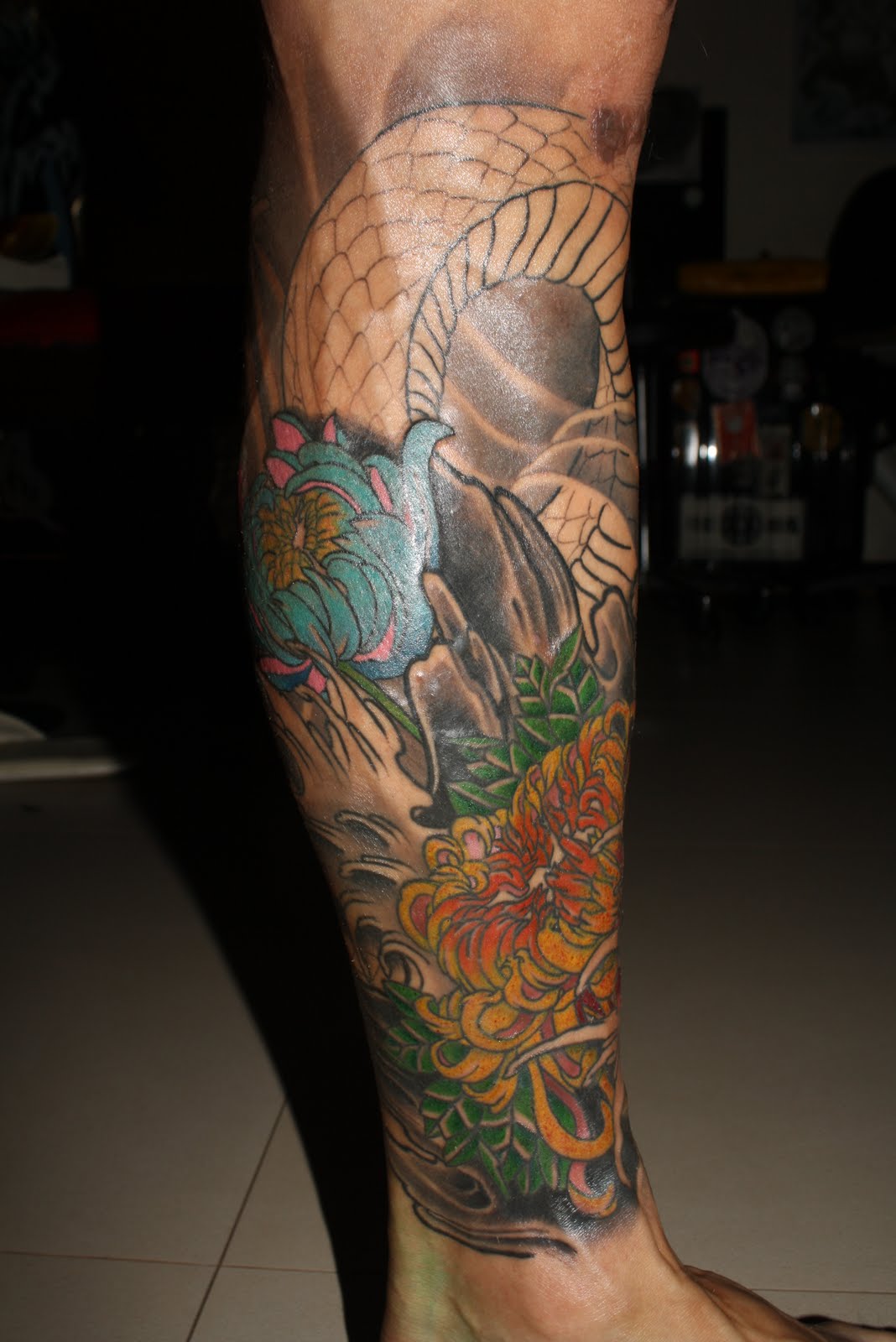 Here's Junhong's in progress Fudo & Tiger sleeve...Gonna take a few more long sittings to finish it!